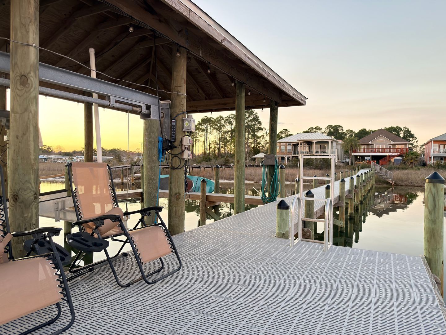 Half Off First Month’s Rent! Available late-March. Waterfront living on Bayou Grande with deep-water access and sweeping sunrises and sunset views. This custom home on elevated pilings offers approximately 50 feet of bayou frontage, a private pier, covered boathouse, and boat lift with quick access to Pensacola Bay and the Gulf. Enjoy the Blue Angels practices and flyovers from your private deck.