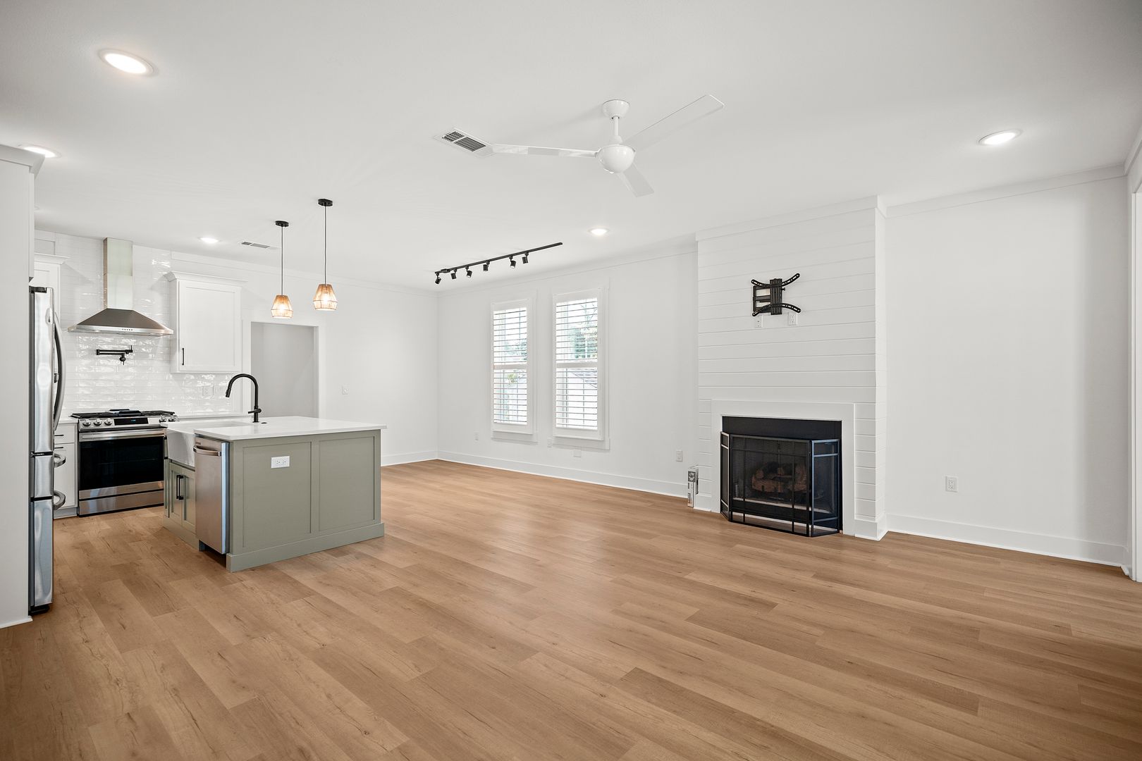 **$450 Off 1st Mo.** Welcome to 440 South F St, a perfect blend of timeless charm and modern living in the heart of thriving Downtown Pensacola. This spacious 4-bedroom, 2.5-bath home offers nearly 1,900 sq ft of thoughtfully designed space. Step inside and be greeted by an inviting open living area with high ceilings, recessed lighting, and a cozy gas fireplace. The stunning kitchen features sleek quartz countertops, stainless appliances, an island with breakfast bar, and a dining area that flows seamlessly into the great room. The primary suite is conveniently located on the main floor, boasting a luxurious bathroom and generous walk-in closet. Upstairs, you’ll find three additional bedrooms, a full bath, and a covered balcony for relaxing evenings. Out back, enjoy the covered porch, pavered patio, freshly sodded fenced yard, and a 16x10 powered storage shed. All this just moments from Palafox Street, renowned restaurants, local breweries, and waterfront parks. Catch a Wahoos game and stay for the Saturday night fireworks. Downtown living at its best!